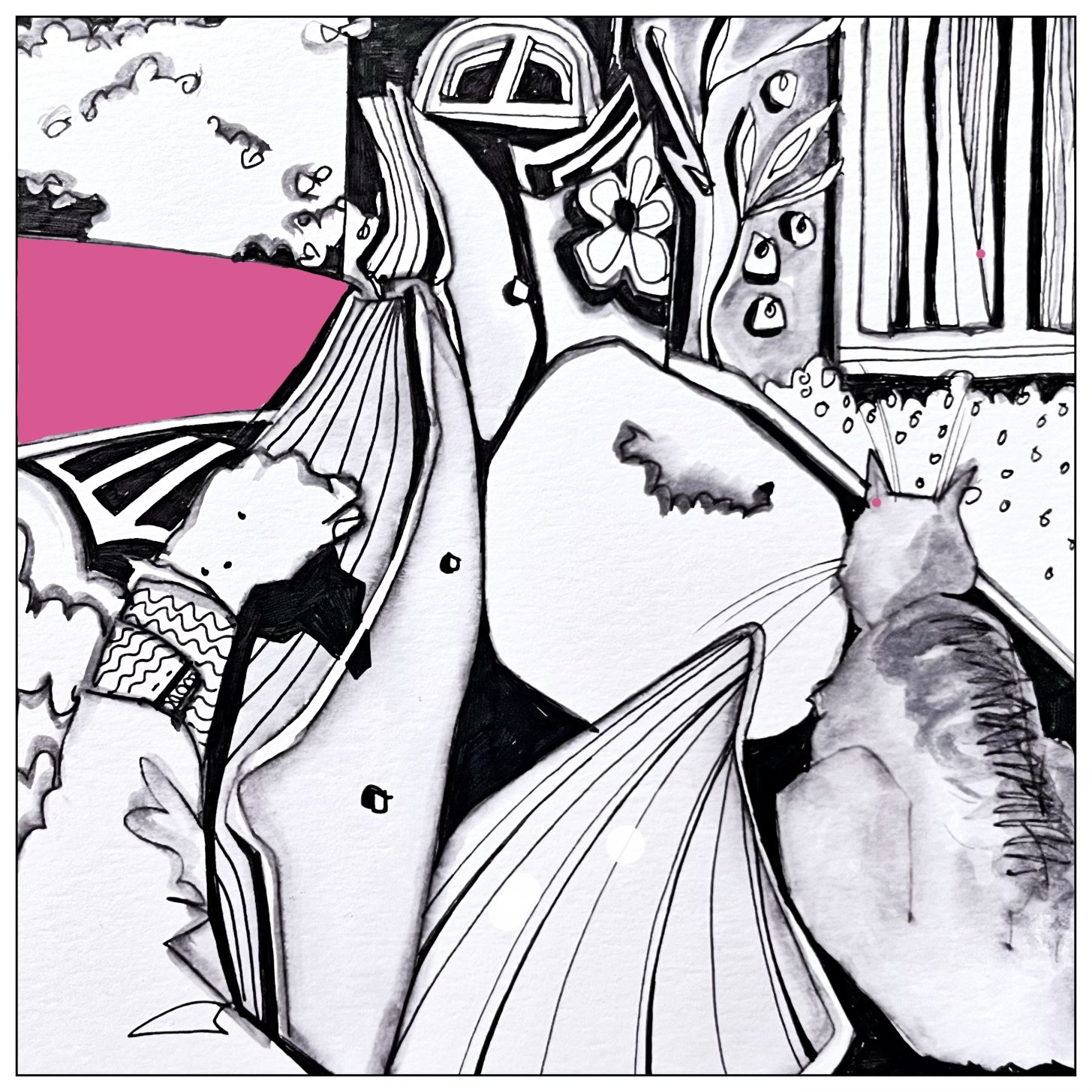 Jordan Lyons-Lau, ‘Kitty Resting on a Table’, alcohol marker