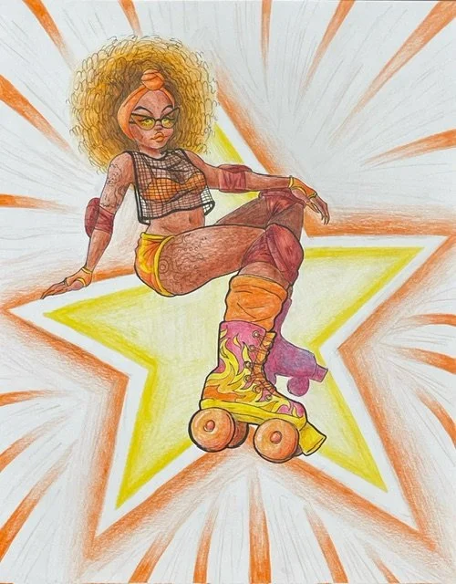 Missy D’Angelo, ‘Roller Babe’, mixed media on paper