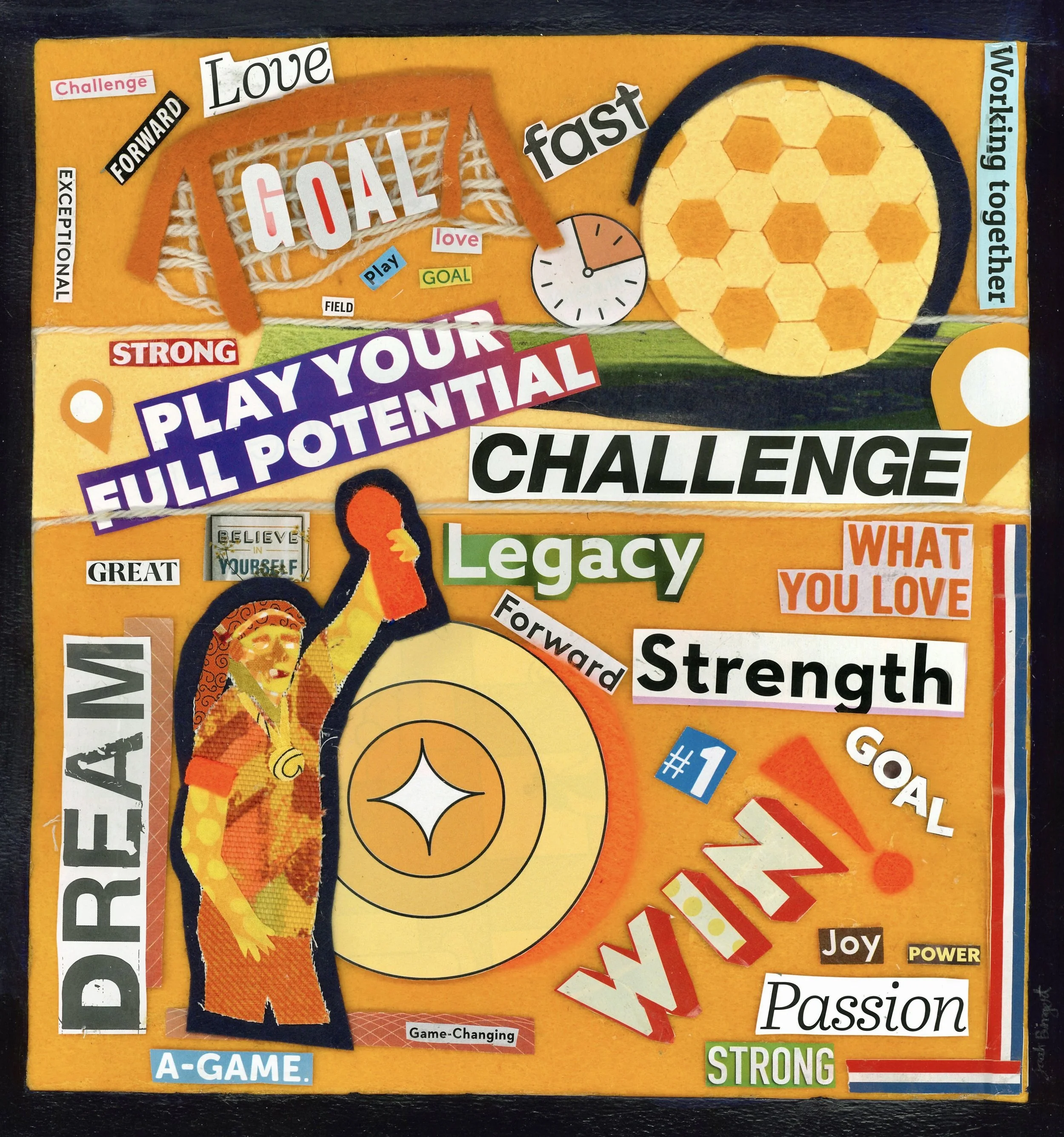 Joah Bingert, ‘Orange You a Champion?’, mixed media collage (fabric, felt, yarn, paper)